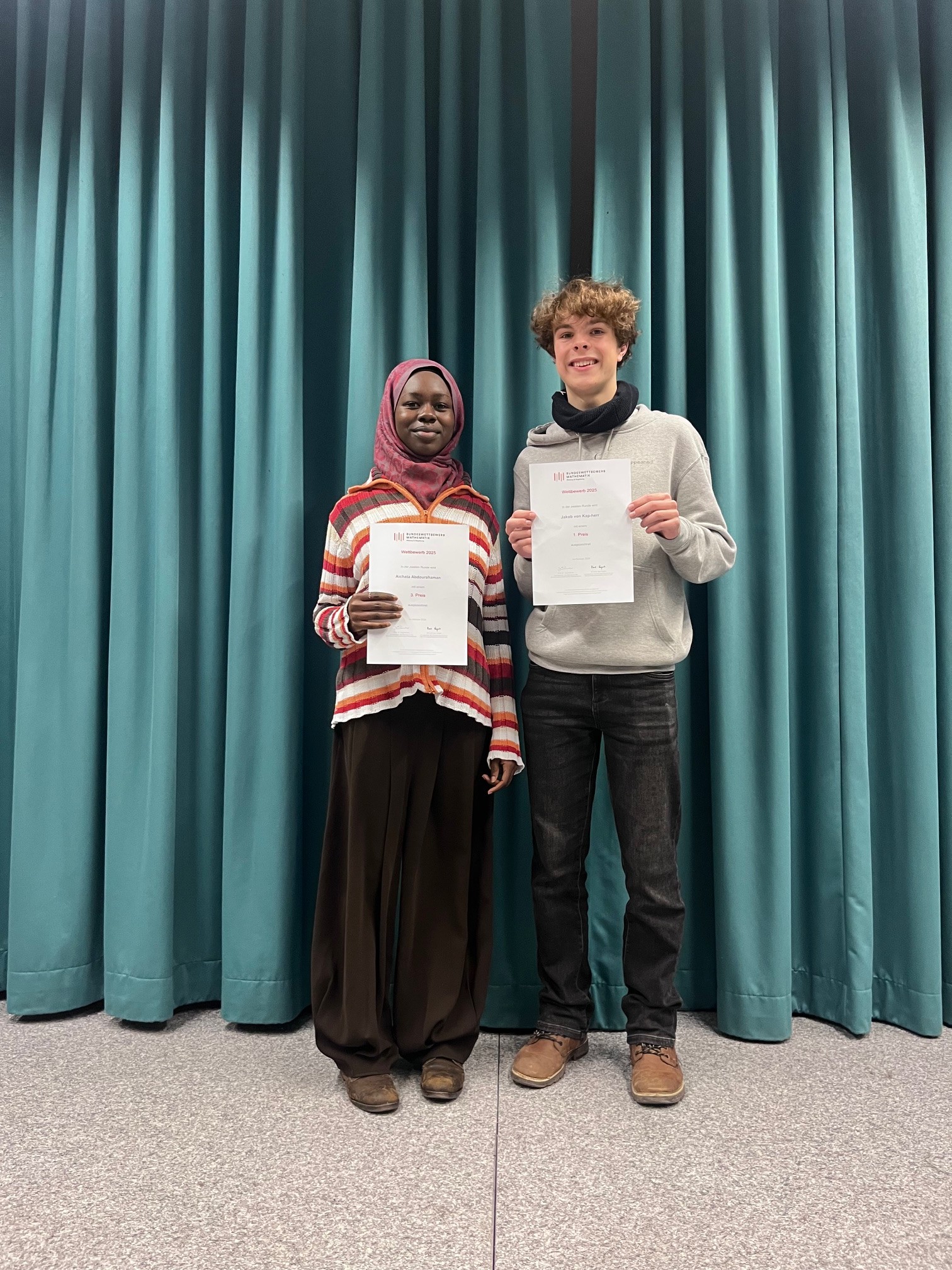 Anfang des Jahres nahmen die drei an der ersten Runde teil und gehörten zu den 289 von ca. 1800 Schüler*innen, die sich für die zweite Runde des Wettbewerbs im Sommer qualifizierten. Auch in der zweiten Runde zeigten sie erneut ihr mathematisches Talent: Jakob und Poyraz erreichten beide einen überragenden 1. Preis, Aichata einen tollen 3. Preis.