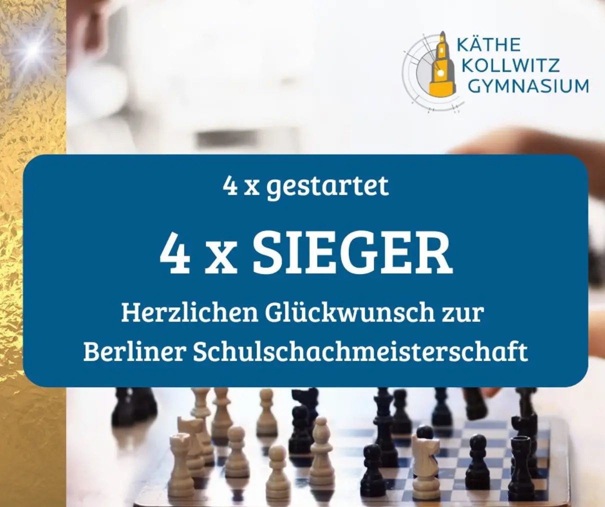 Was für ein Erfolg! Wir starteten mit vier Teams beim Finale der Berlin Schulschachmeisterschaften und haben gleich vier Mal gewonnen. Am 11.03.2026 spielten unsere Schach-Kids mit Begeisterung und hoher Motivation.