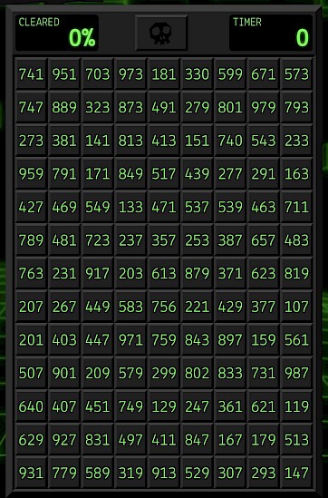 Pass auf, dass du nur Zahle anklickst, die keine Primzahlen sind. Hier geht es zur zahlentheoretischen Version des Kult-Spiels Minesweeper.