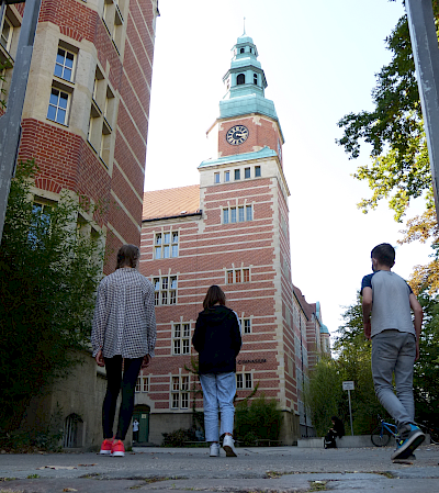 Das Käthe-Kollwitz-Gymnasium befindet sich in Berlin Pankow, mitten im Prenzlauer Berg. Hier hat auch Käthe Kollwitz zu ihrer Lebzeit gewirkt. Und genau so wie sich das Leben einer Künstlerin nicht nur auf ihre Kunst reduzieren lässt, wird das Gesicht einer Schule nicht nur durch ihre Fassade gekennzeichnet.